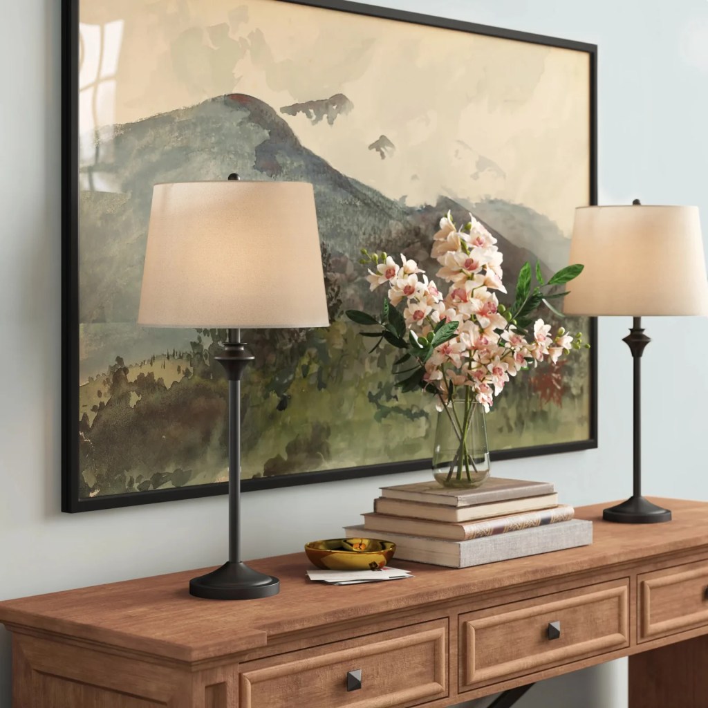 There is something extra cozy about a home with lamps. This Babson Metal Buffet Lamp pair from Wayfair is priced at $66.99 for the set currently. These are a really great value and a simple way to dress up your entry table decor.