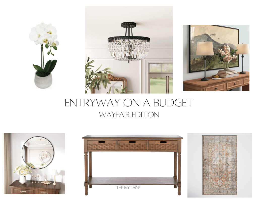 There are so many possibilities for decorating an entryway. Remember, picture frames and book stacks also make great additions to entry tables, and those are things that many people have currently in their home. Shop your own space before shopping online and that is another way to cut costs.