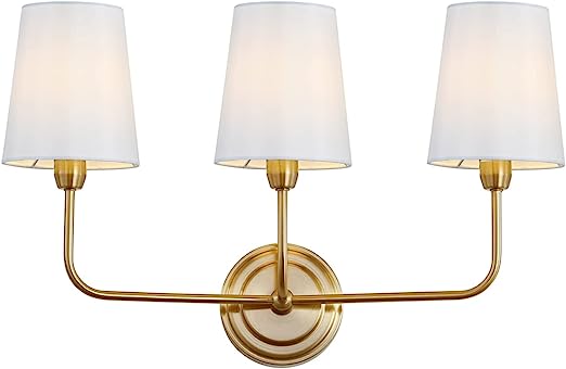 I was looking for something classic and traditional for the light fixture, and went with this Safavieh Brass 3 Light Wall Sconce. The finish had a slightly more orange hue than I had hoped for (review photos prepared me for this possibility however), but I loved the shades and shape enough that I decided to keep it. It is also a great value at under $100.